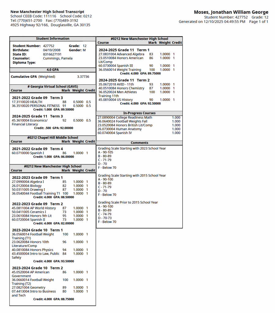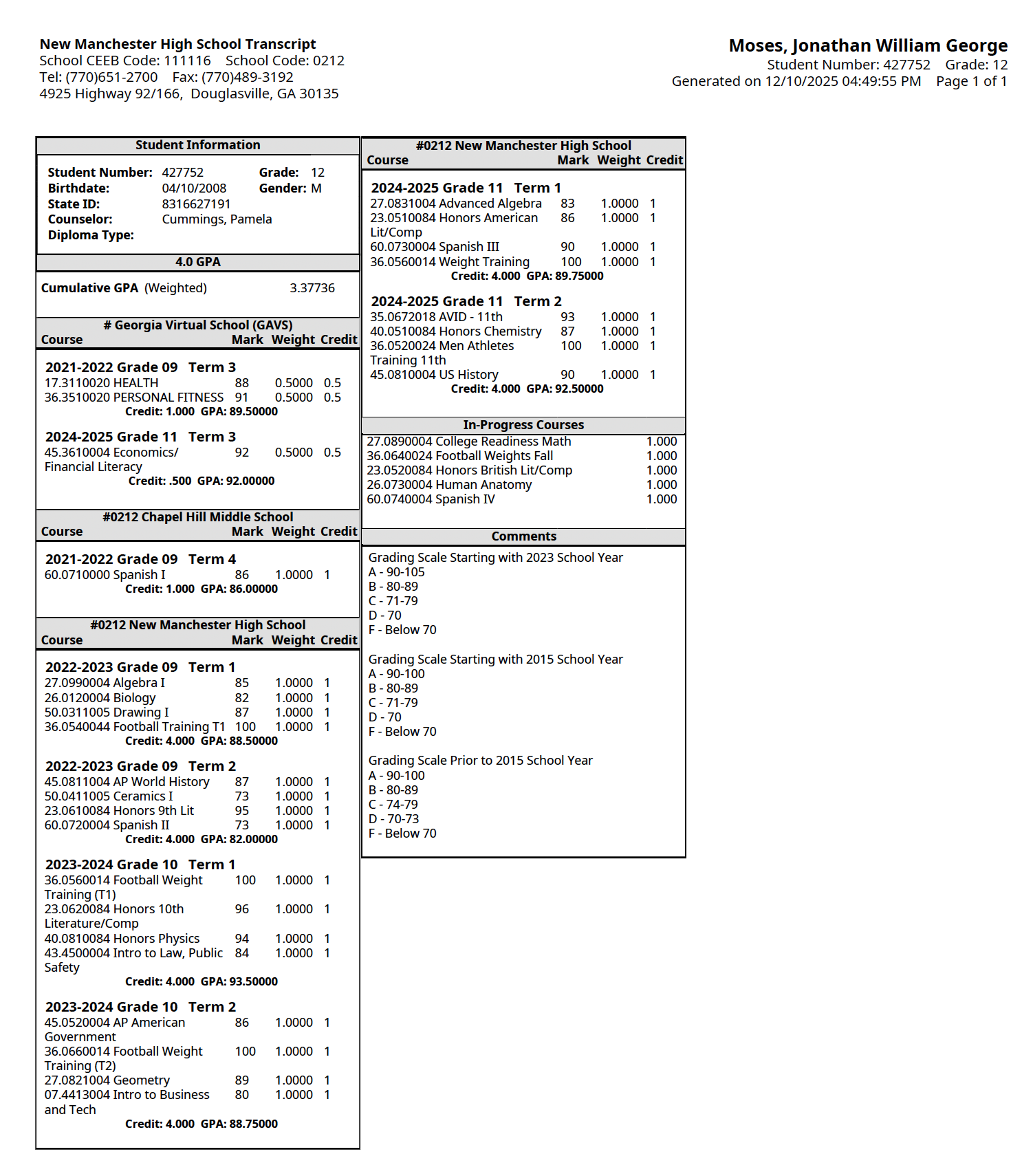 As the nephew of the late Quentin Moses—a University of Georgia football legend and former Miami Dolphins defensive standout—Jonathan Moses has long understood the weight and honor of legacy. Now, the rising senior from New Manchester High School in Douglasville, Georgia, is writing his own story—grounded in excellence, discipline, and a relentless drive to lead both on and off the field.