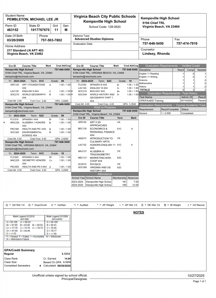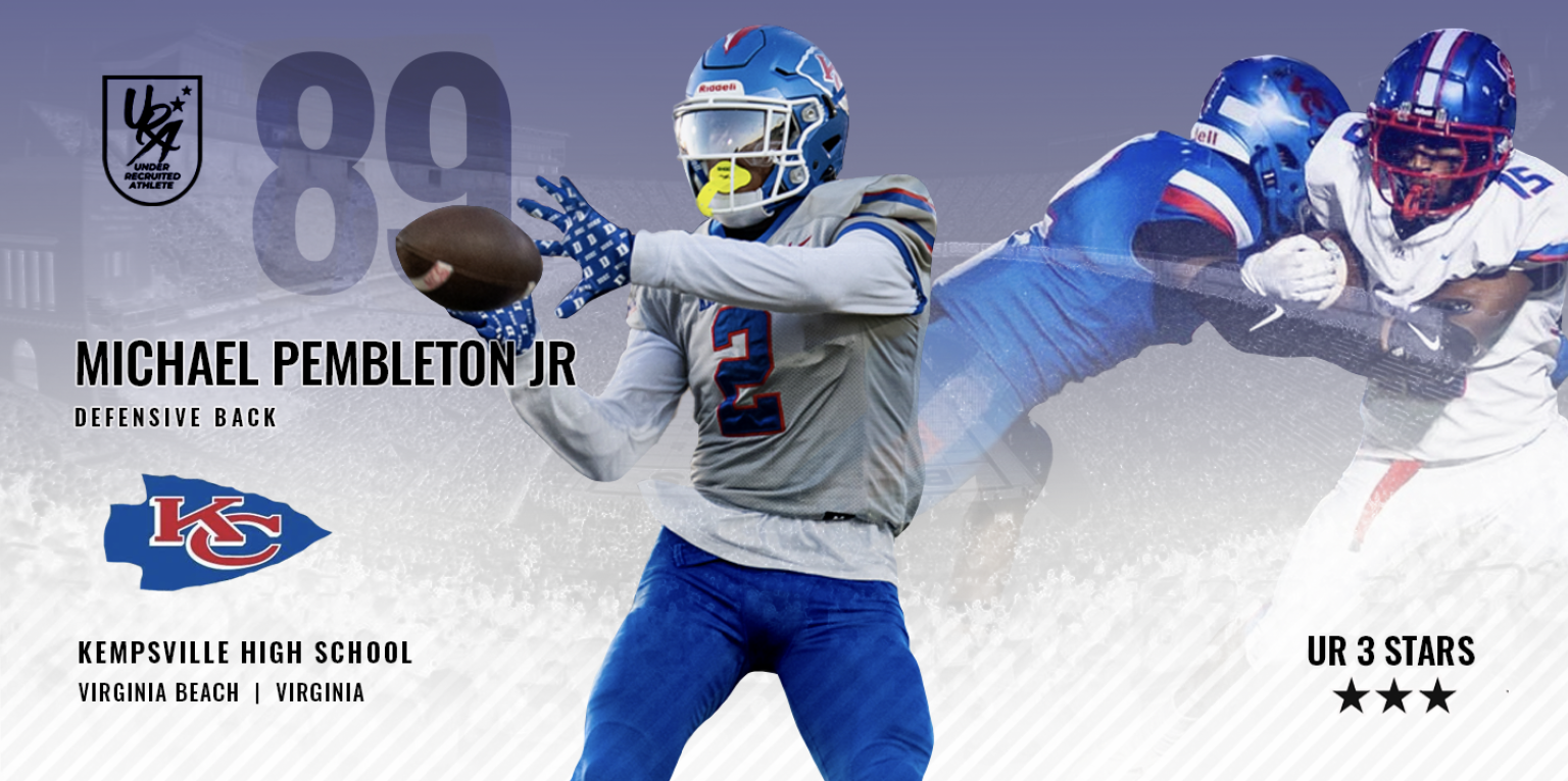 Michael Pembleton Jr. is a disciplined, high-character student-athlete from Kempsville High School who approaches football and academics with the same level of commitment and intentionality. His long-term goal is to compete at the highest level of college football while earning his degree and preparing for success beyond the game.