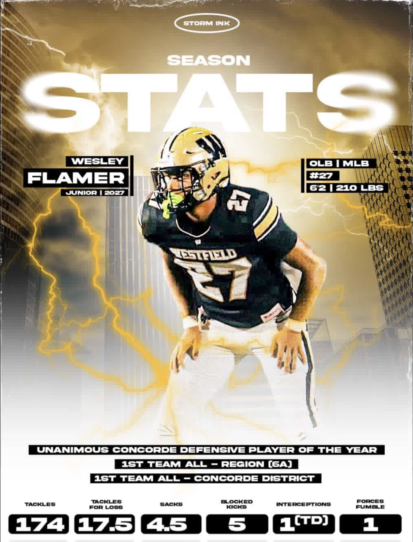 Entering his senior season, Wesley Flamer projects as one of the top defensive leaders in the state and a centerpiece of his team’s identity. After back-to-back dominant varsity seasons and a historic junior-year campaign, expectations are high—and earned.