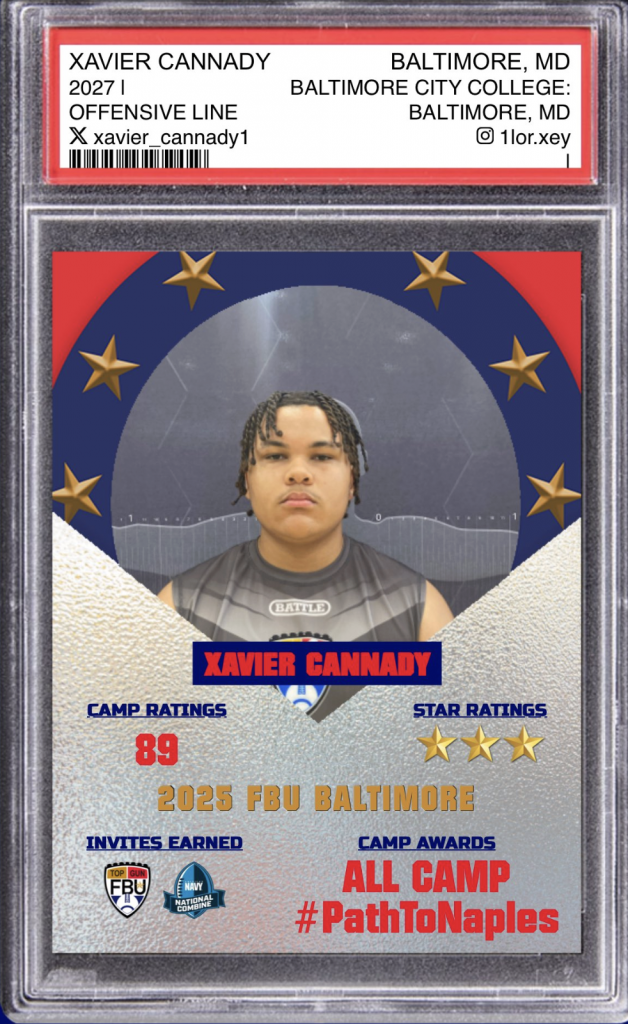 Xavier Cannady is a Baltimore City native and student-athlete currently attending Paul Laurence High School, where he anchors a dominant Maryland Championship offensive line.   Standing at 6’2”, 285 pounds, Cannady plays primarily at center, with the versatility to also contribute at guard and tackle positions. As a three-year varsity starter and team captain, Cannady has established himself as a reliable and physical presence in the trenches. His size, strength, and understanding of the game allow him to anchor the offensive line while competing at a high level against top competition in the Baltimore area.